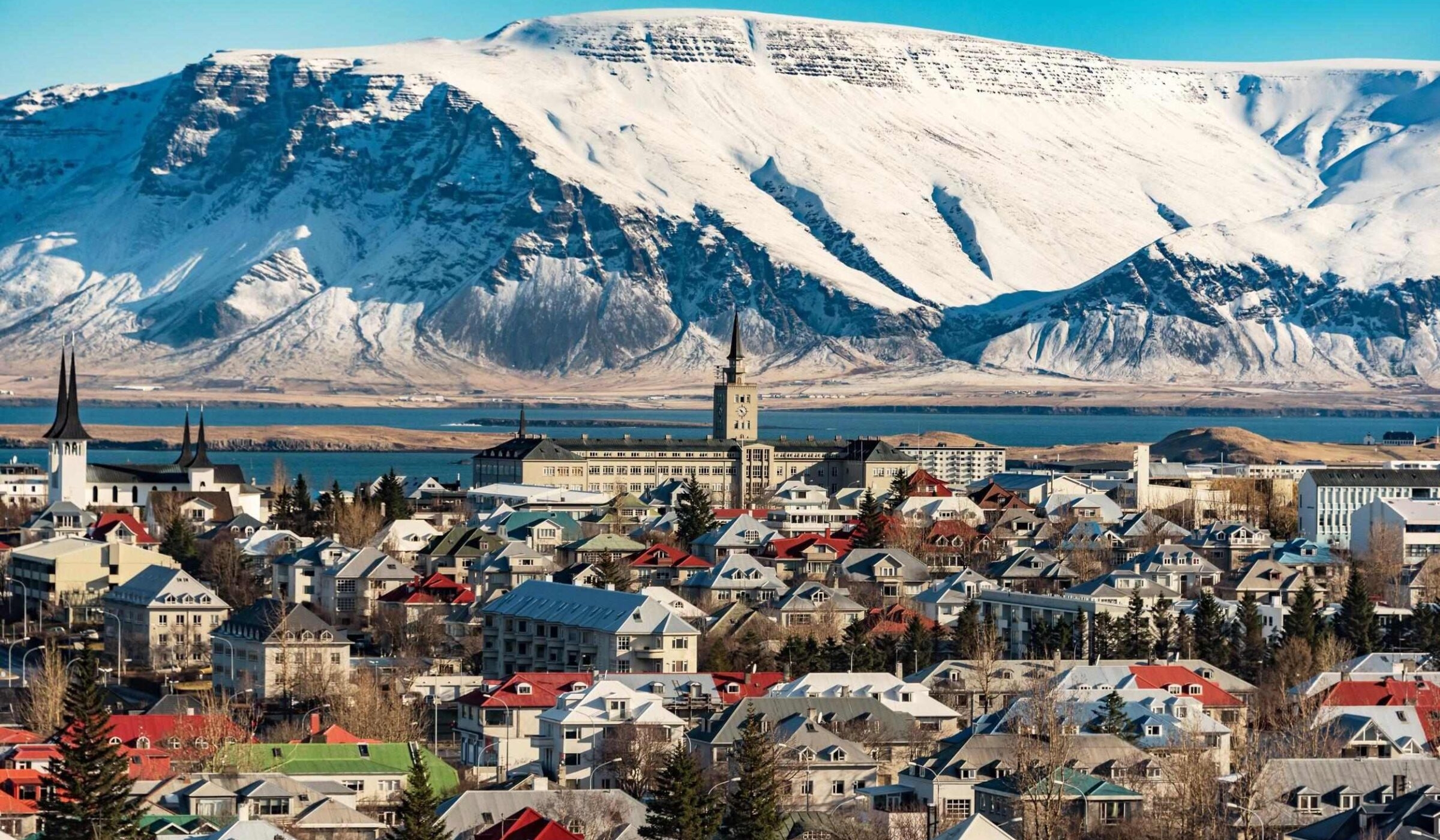 A view of Reykjavik, Iceland's cityscape as seen from the water.