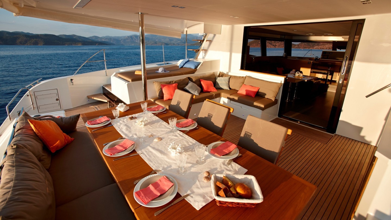 The Vega is a luxury 17m vessel with five double cabins each with a private washroom. There is a spacious indoor living room, an outdoor lounge area and a spacious 25 m² cockpit. Whilst on board you will be joined by a captain, chef/hostess and helper so you simply sit back, relax and take in your spectacular surroundings.