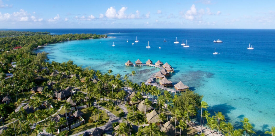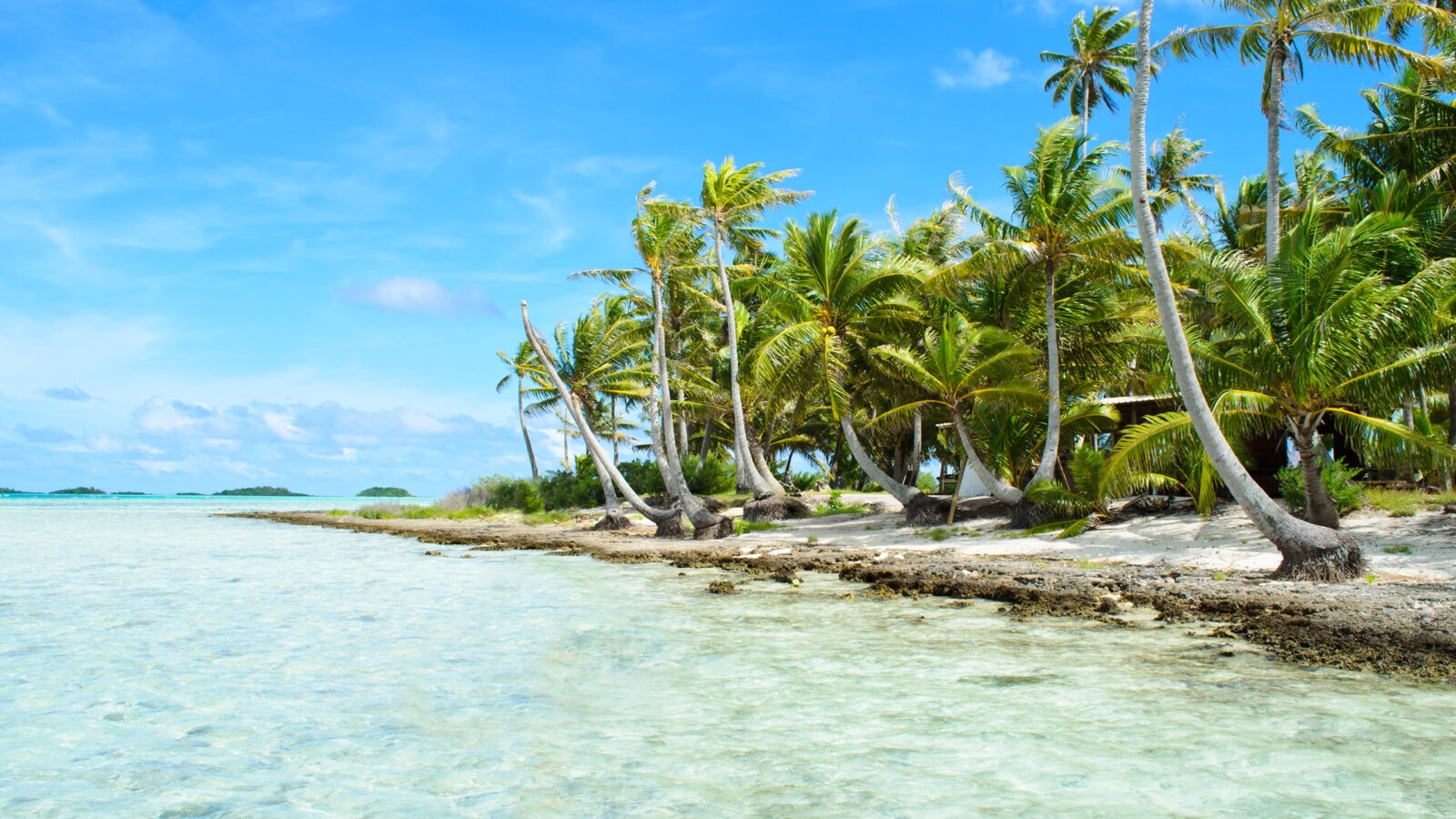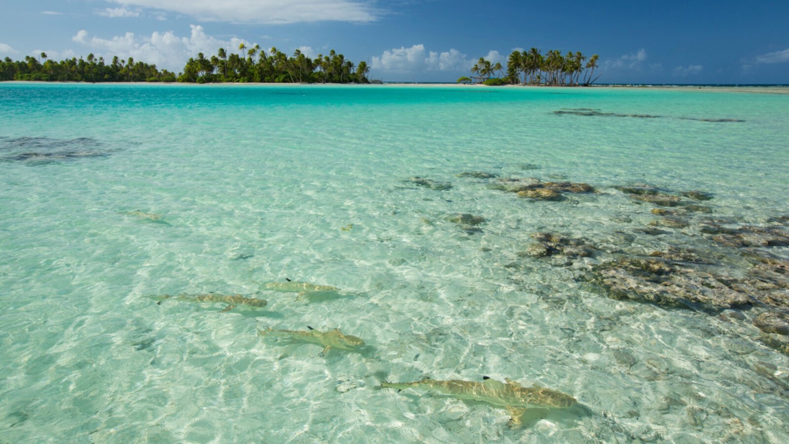 Rangiroa means ‘immense sky’ in the local language, and it’s not hard to see why. Unlike many destinations in French Polynesia, there are no mountains and aquamarine water stretches as far as the eye can see. Flat islands and sandbars circle a vast blue lagoon home to manta rays, sharks, turtles and shoals of barracuda.