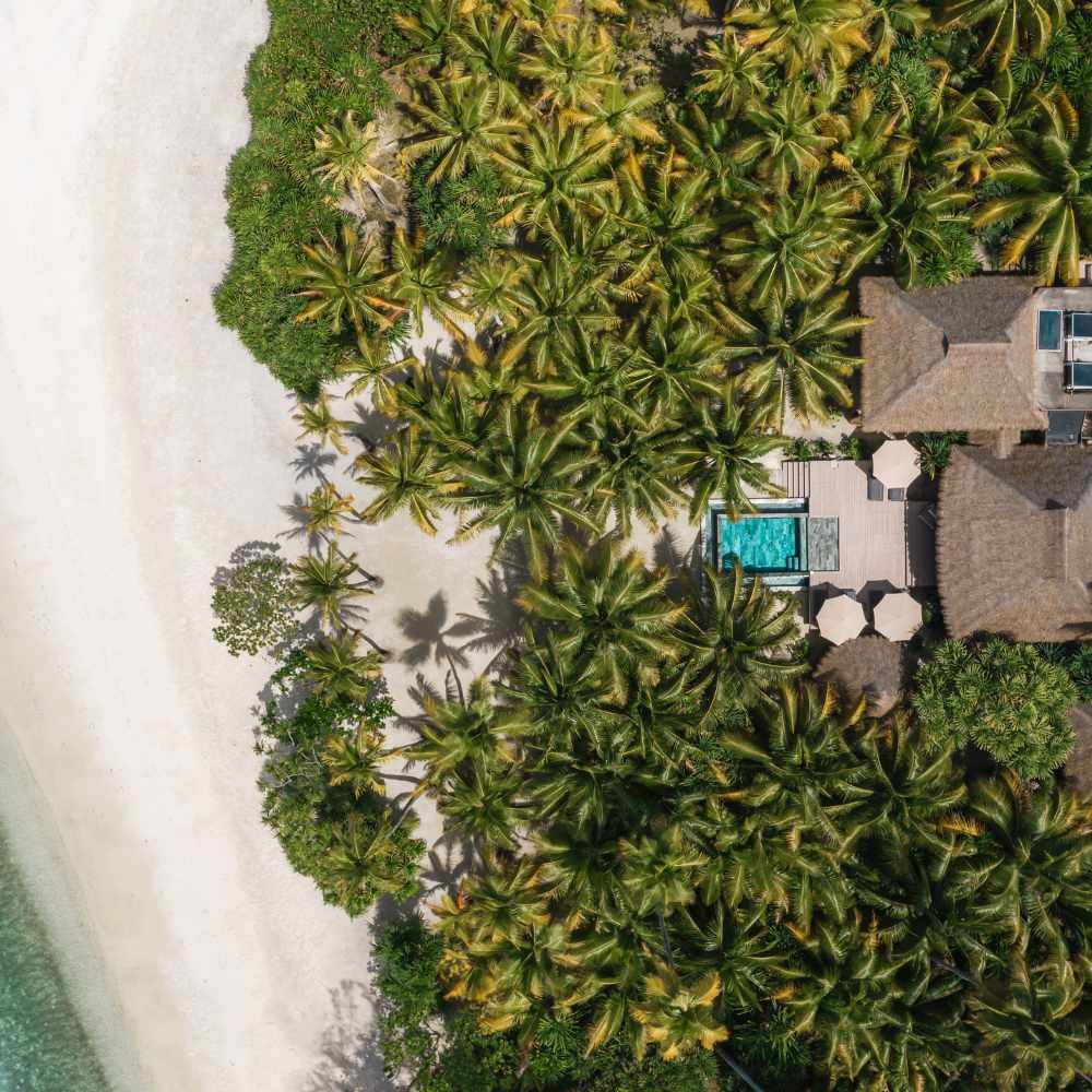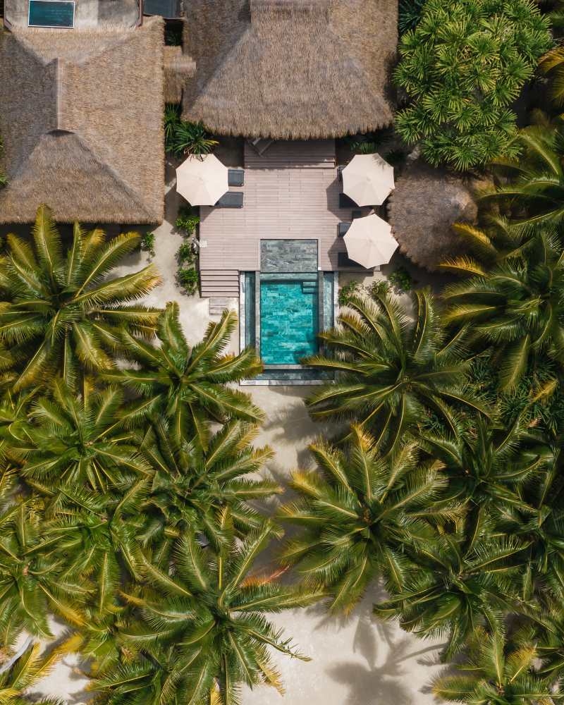 Villas feature high ceilings and large windows, ensuring they are bright and airy. Decking leads to a private plunge pool and there’s an outdoor bathtub for a soak under the stars.