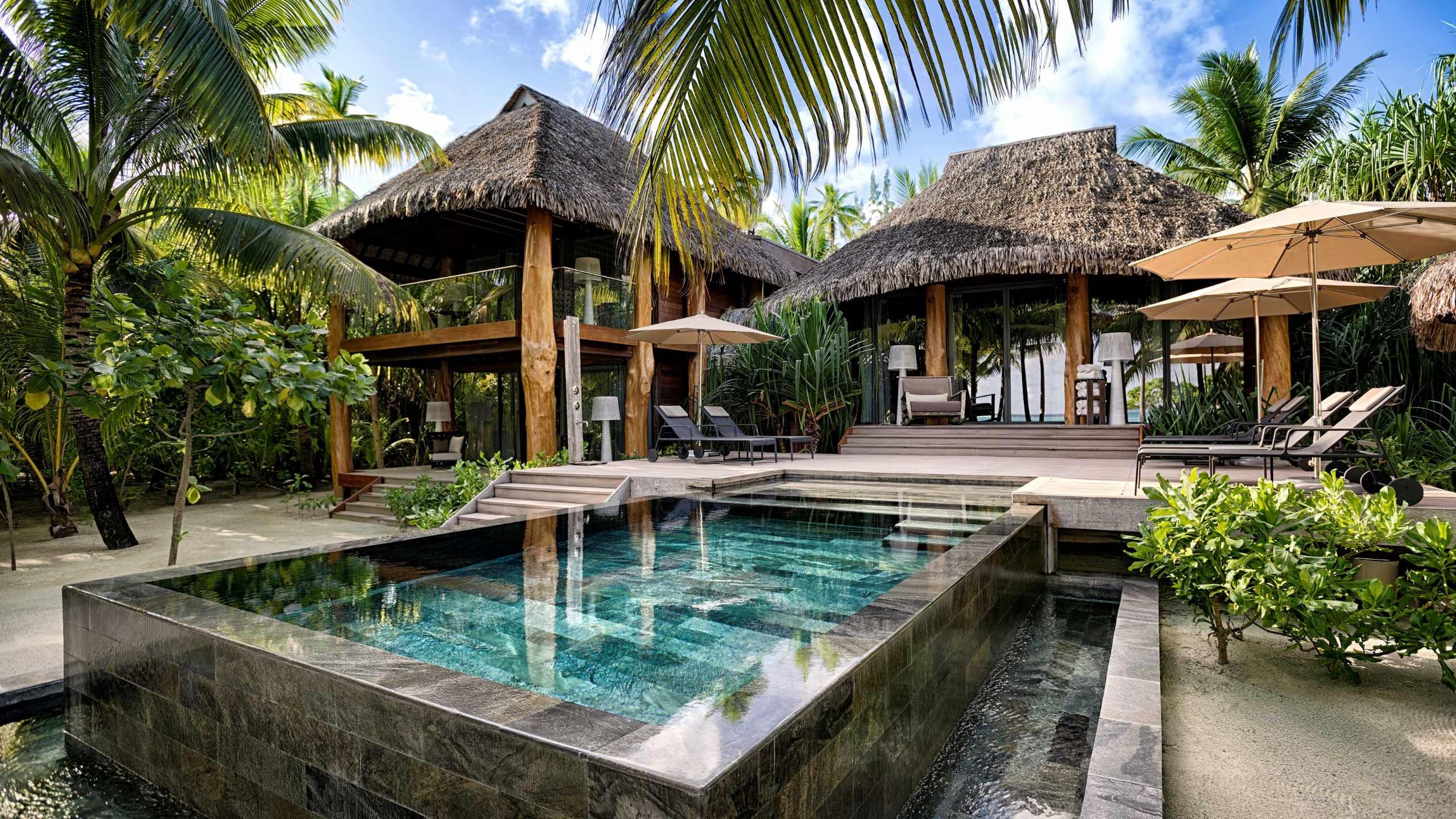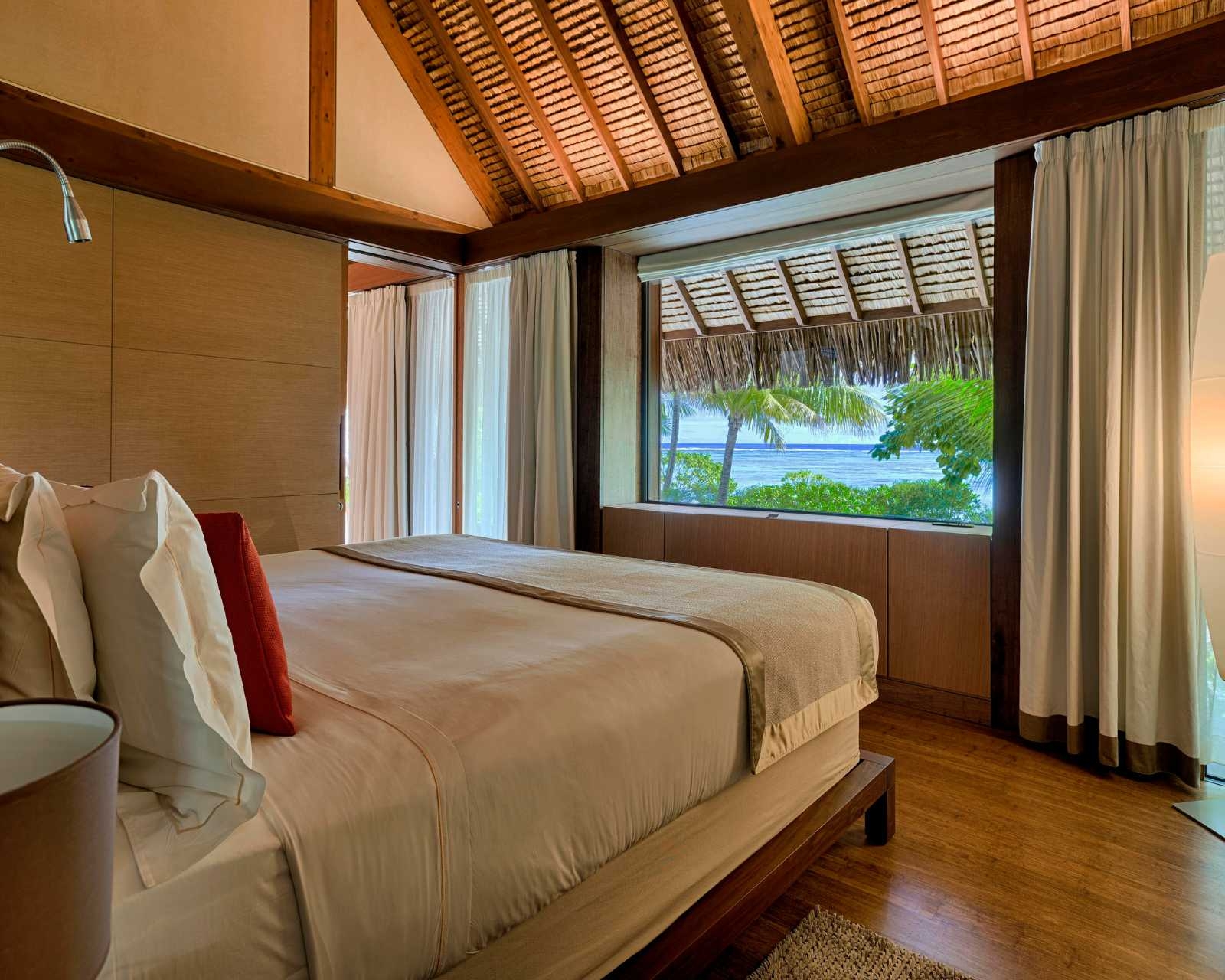 Serenity is paramount, and all 57 suites and villas are designed according to Polynesian tradition. Bamboo, local wood, stone, coral, textiles and woven coconut ropes all feature, making the resort both authentic and luxurious.