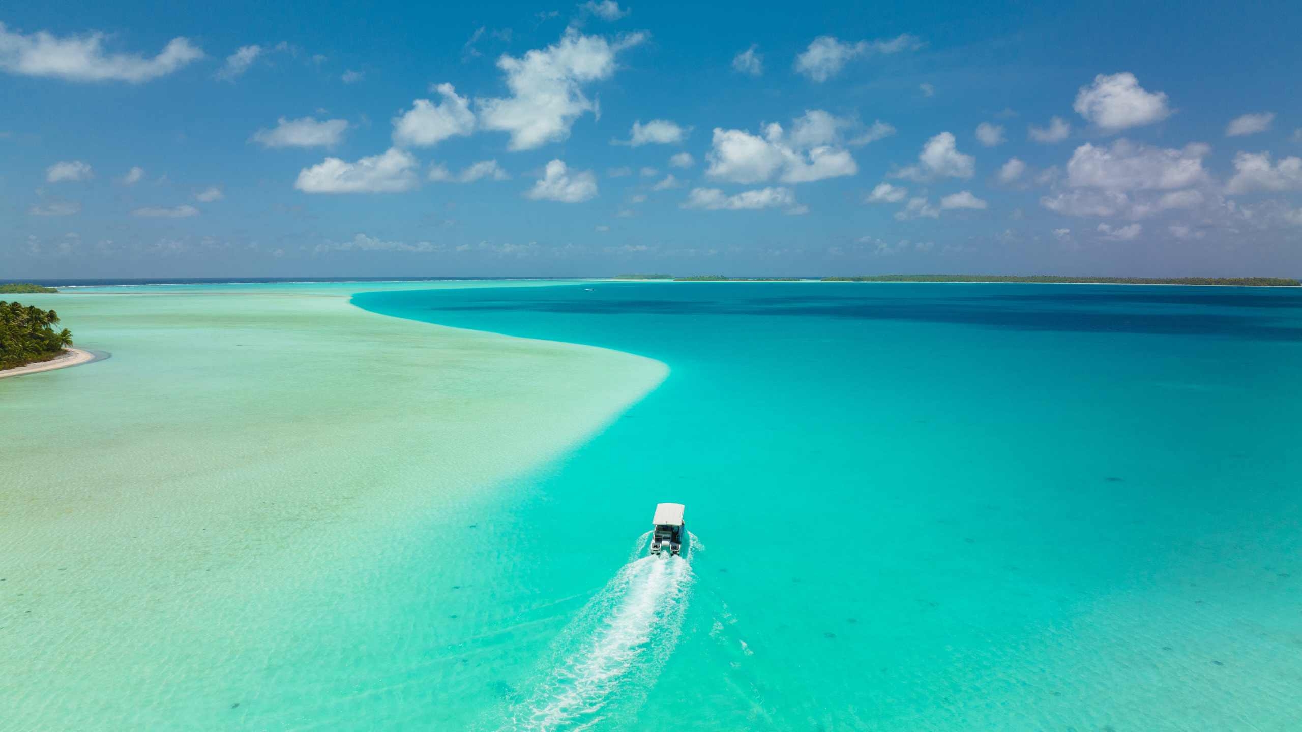 The lagoon is teeming with marine life and guests can explore this diverse underwater world by swimming, snorkelling, diving or kayaking through the pristine waters. There’s also the option to hop on a bike and explore the lush green interior of the island. Back at the resort, there’s an infinity pool, tennis court and a beautiful spa nestled among the tropical flowers.