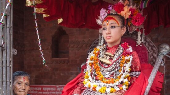 The world’s only living goddesses are found in Nepal. Revered by Nepali Buddhists and Hindus, Kumaris are young girls who are believed to be manifestations of the Taleju goddess. The Kumari is chosen from the Newari community in a rigorous selection process, and taken to live in a palace where she is worshipped during religious festivals until she starts menstruating. At that point, it is believed the goddess leaves her body and a new Kumari must be chosen.