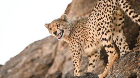 On their fourth day in Hoanib, Bob and Jacqueline couldn’t help but wonder if they were ever going to see any wildlife predators. As luck would have it, that same morning, they found a desert cheetah and her cub! Depicted in the photo on the left, this baby was throwing a tantrum, calling for his mother to follow him.”