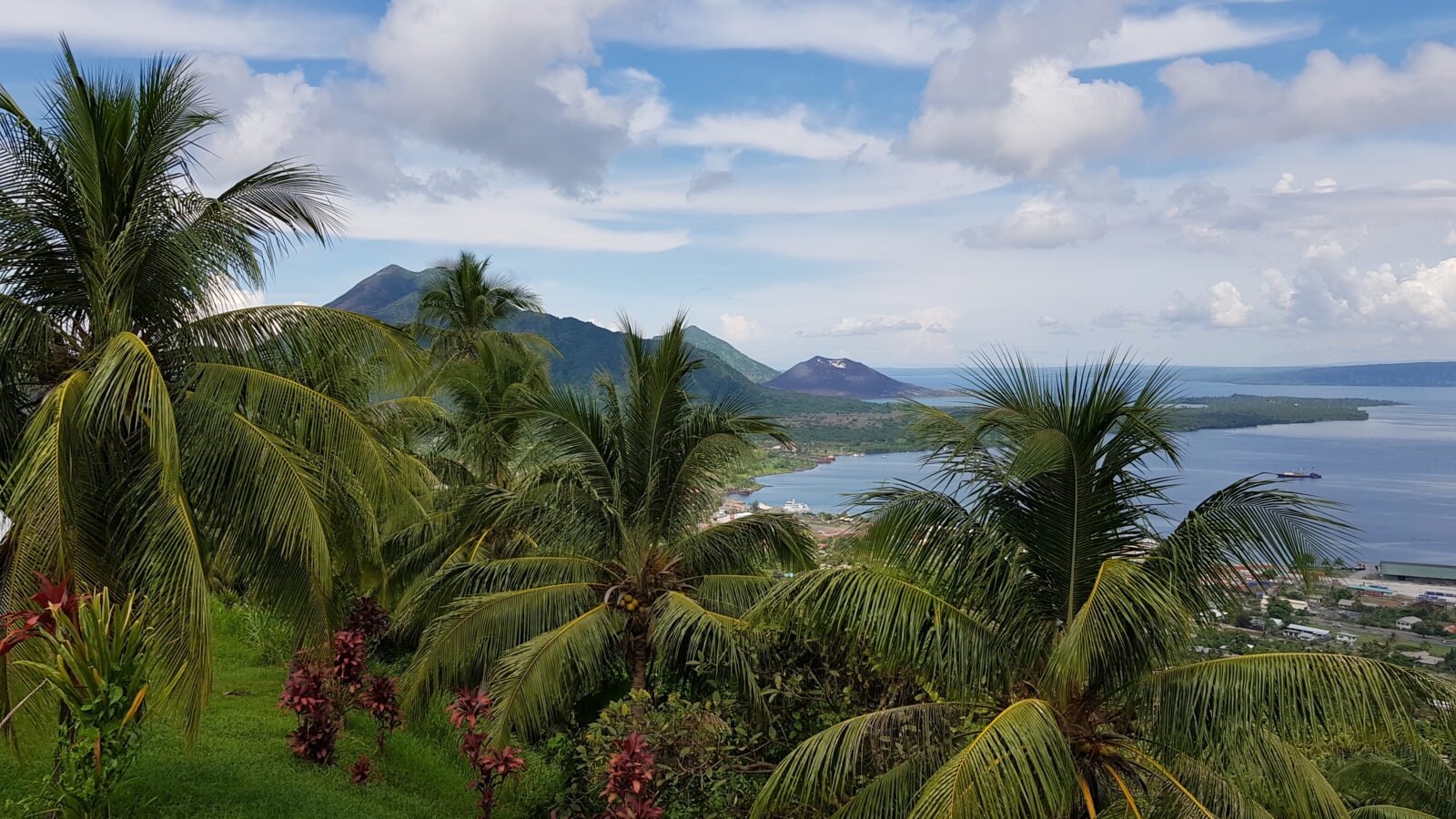 Rabaul was the capital of the East New Britain Province up until 1994 when the volcano erupted and covered 80% of the buildings in the township in ash. Parts of the town have been rebuilt but a large area closer to the volcano was too badly damaged and all signs of buildings have now gone. As a result, the capital was moved to Kokopo. In Rabaul, we visited the Vulcanology Observatory which was fascinating, and had the added bonus of providing excellent views over Simpson Harbour.