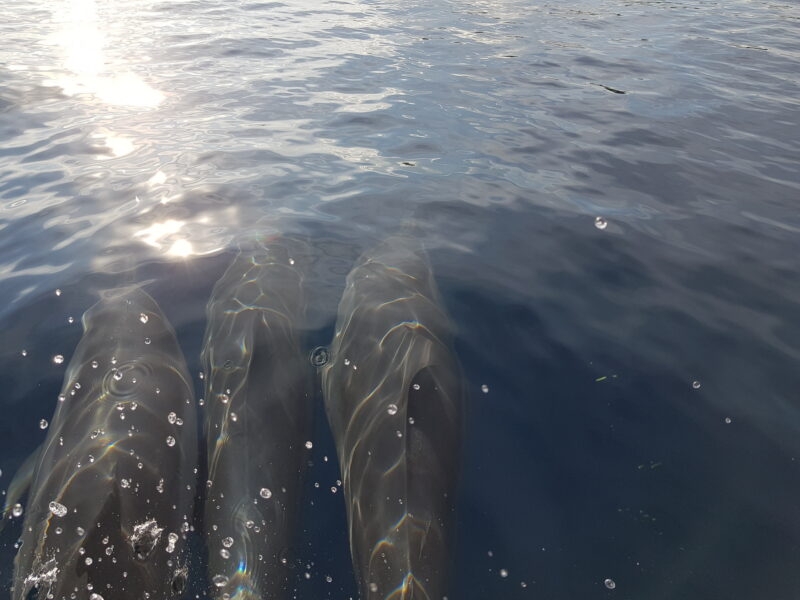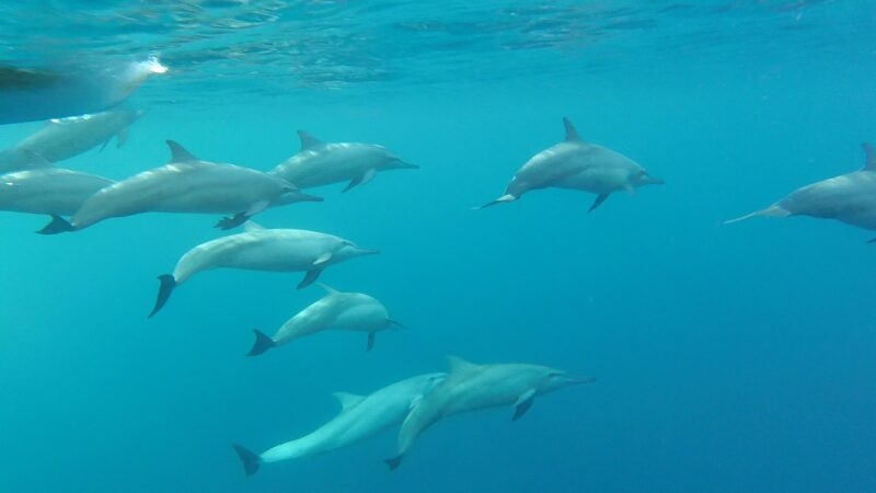 As there are very few road systems in Papua New Guinea, the best way to get around is by light aircraft; our first stop was Rabaul in the East New Britain Province, a short flight away from capital Port Morseby. We arrived at Kokopo Beach Bungalows, with beautiful views out over the ocean and the nearby volcano. Just after sunrise, we took a banana boat out to a nearby cove and jumped into the warm water to swim alongside hundreds of wild spinner dolphins. An experience that was both exhilarating and magical, it felt like it was just us and the dolphins.
