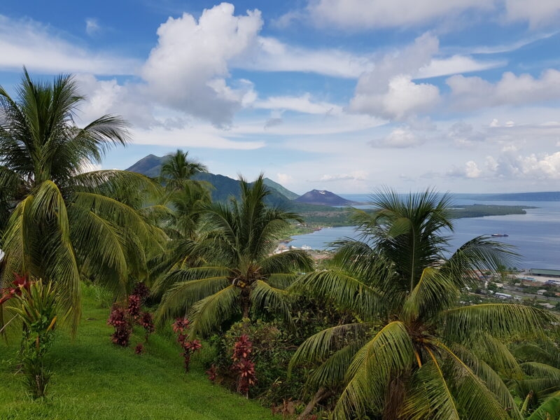 Rabaul was the capital of the East New Britain Province up until 1994 when the volcano erupted and covered 80% of the buildings in the township in ash. Parts of the town have been rebuilt but a large area closer to the volcano was too badly damaged and all signs of buildings have now gone. As a result, the capital was moved to Kokopo. In Rabaul, we visited the Vulcanology Observatory which was fascinating, and had the added bonus of providing excellent views over Simpson Harbour.