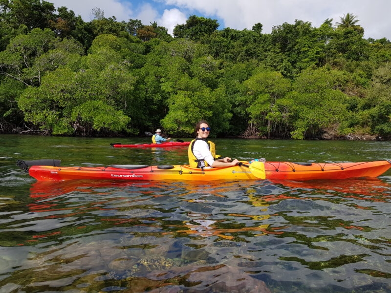 For non-divers, there are plenty of other excellent water based activities to do in Tufi. We took these sea kayaks out into the tropical fiords where the water is crystal clear so we could see all the coral beneath us.